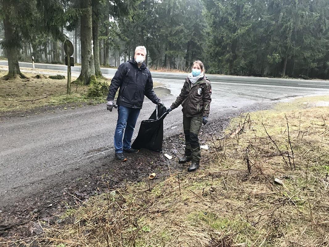 Landrat und Vorsitzender des Naturpark Taunus Ulrich Krebs sammelte ebenfalls am Windeck unterhalb des Feldbergs mit und unterstrich die Wichtigkeit der Aktion: „Gerade durch den starken Besucheransturm in den Winterwochen im Taunus liegt eine erhebliche Menge an Müll an den Parkplätzen und Wanderwegen. Mit einer solchen Müll-Sammel-Aktion können wir diesem Problem begegnen,“ betonte Krebs.