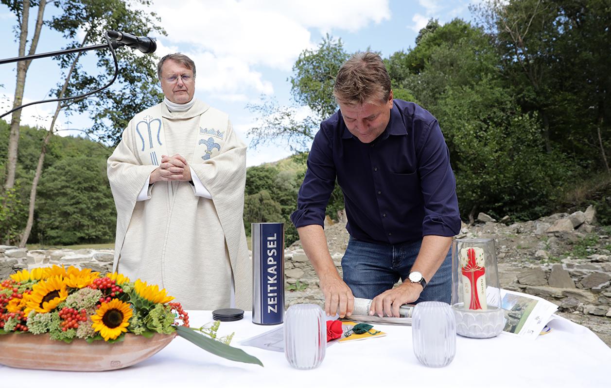 Zur Erinnerung an die im Jahr 2020 laufende Sanierung der ehemaligen Wallfahrtskirche weihte Pfarrer Meuer eine Zeitkapsel mit Dokumenten und Münzen aus diesem Jahr sowie mit einem Rosenkranz. Landrat Ulrich Krebs kündigte an, der Naturpark werde den Kirchenwandertag auch in den kommenden Jahren wieder anbieten. „Der Landstein war der Gottesmutter Maria geweiht und so hat der Wandergottesdienst eine Woche nach Maria Himmelfahrt auch schon eine kleine Tradition entwickelt,“ sagte Krebs, der auch Vorsitzender des Zweckverbandes Naturpark Taunus ist.Weitere Informationen zum Naturpark unter der Rufnummer 06171/979070, oder unter www.naturpark-taunus.de.